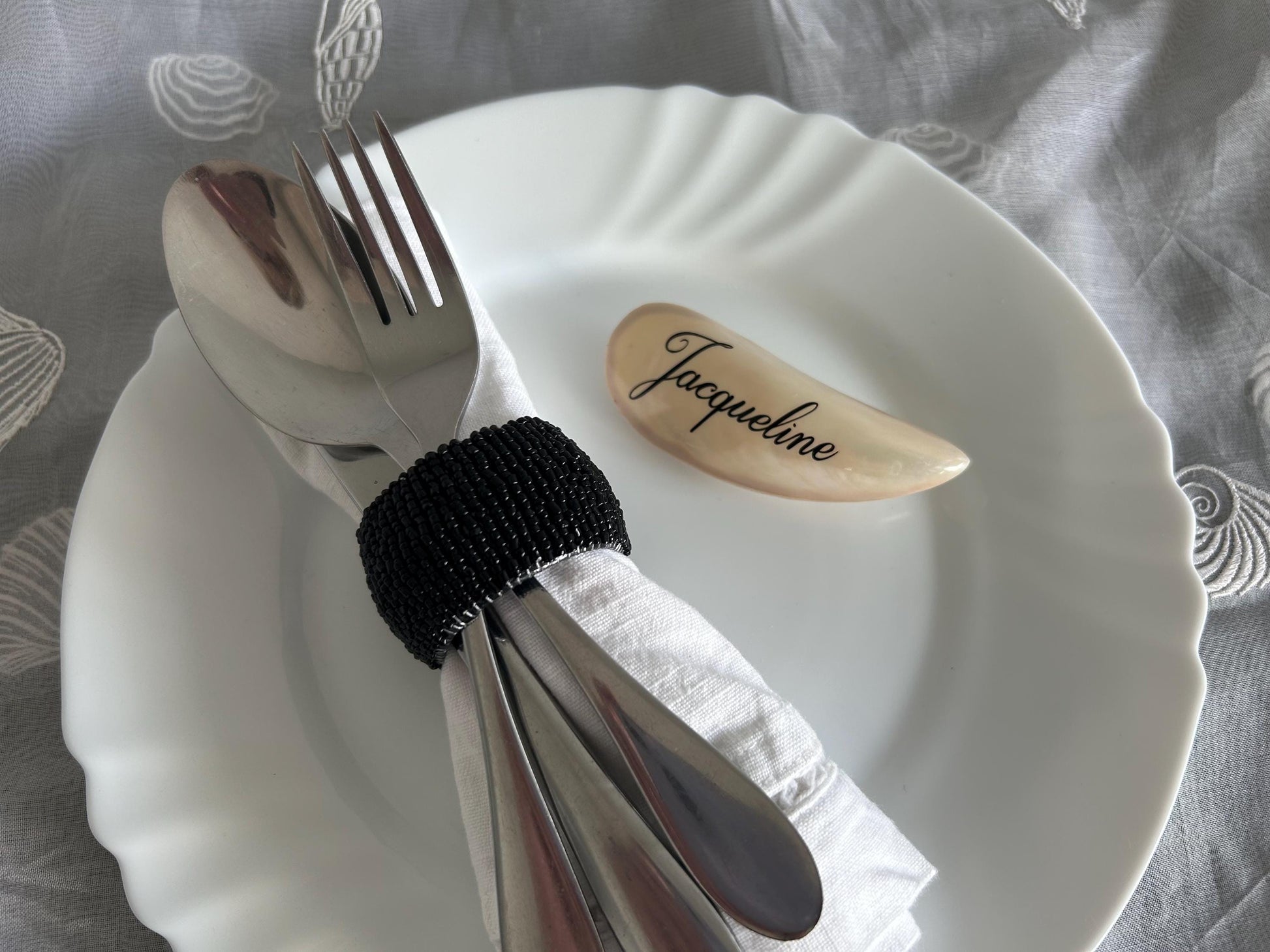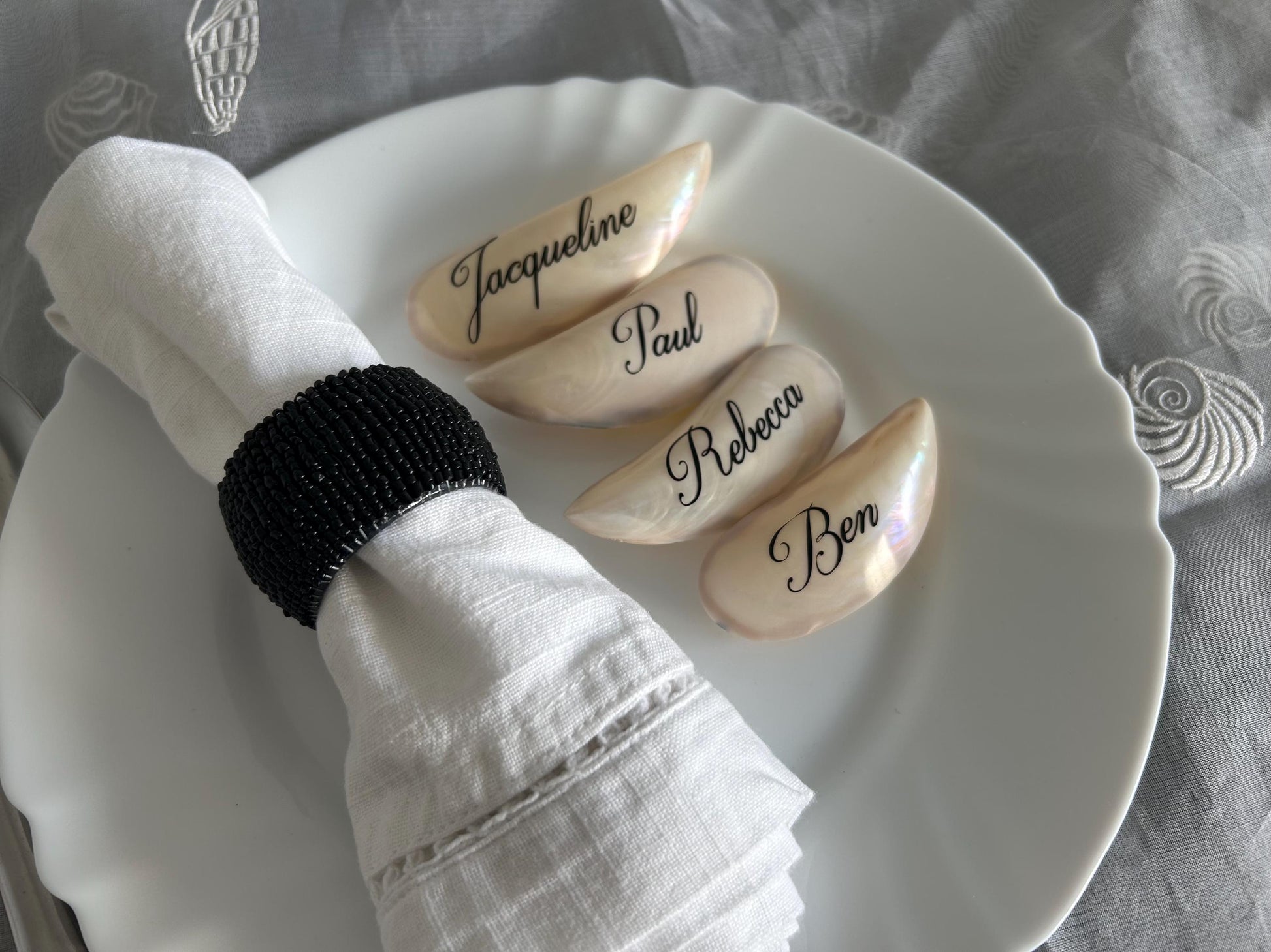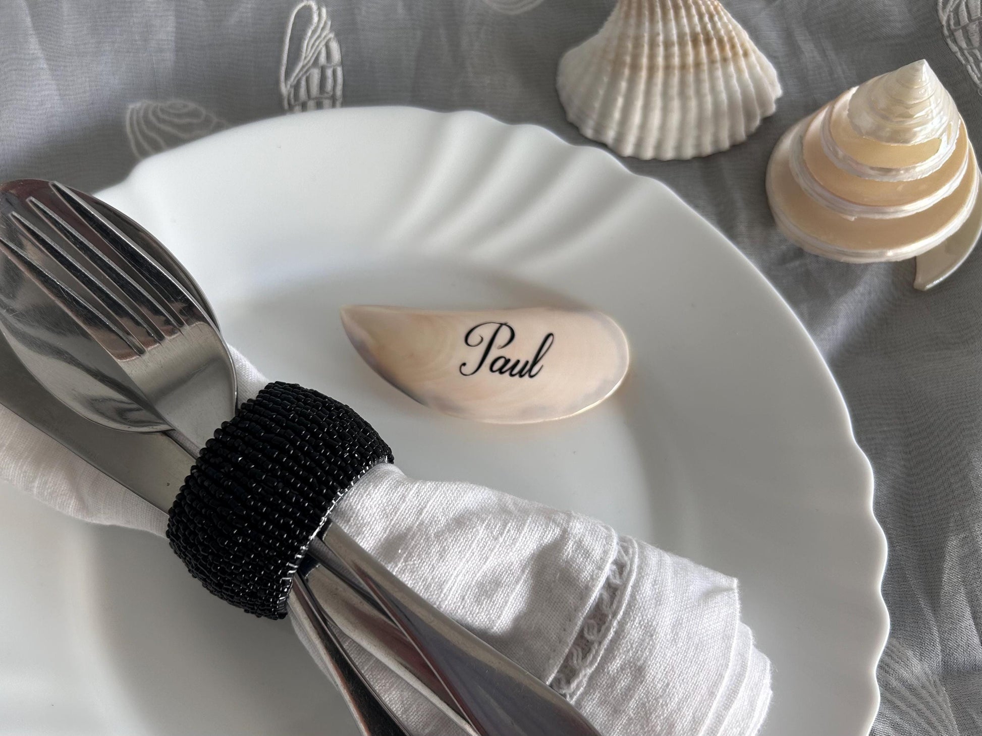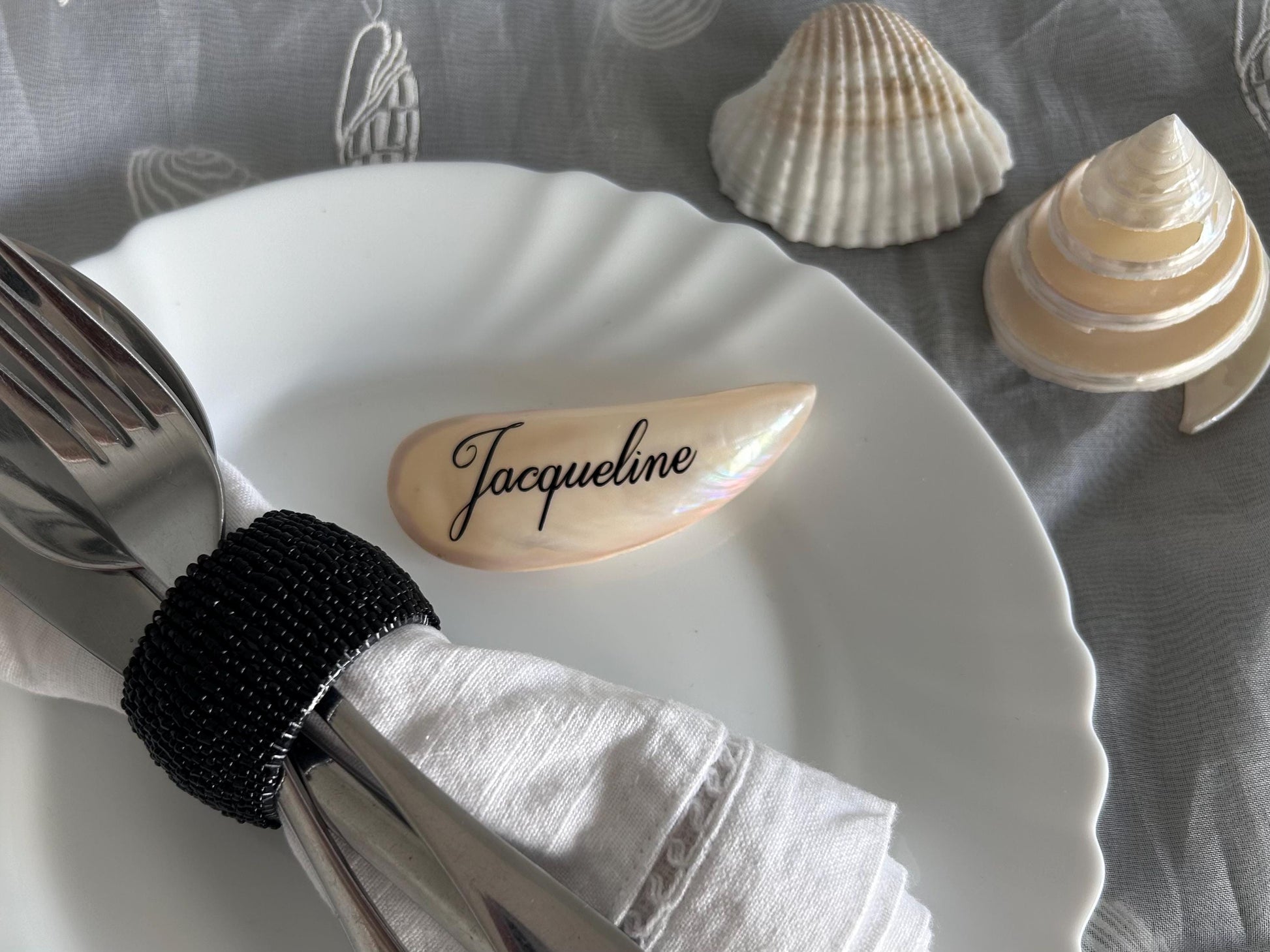 Natural Tahong Mussel seashell polished to give a lustrous finish, and personalised with your guests names.