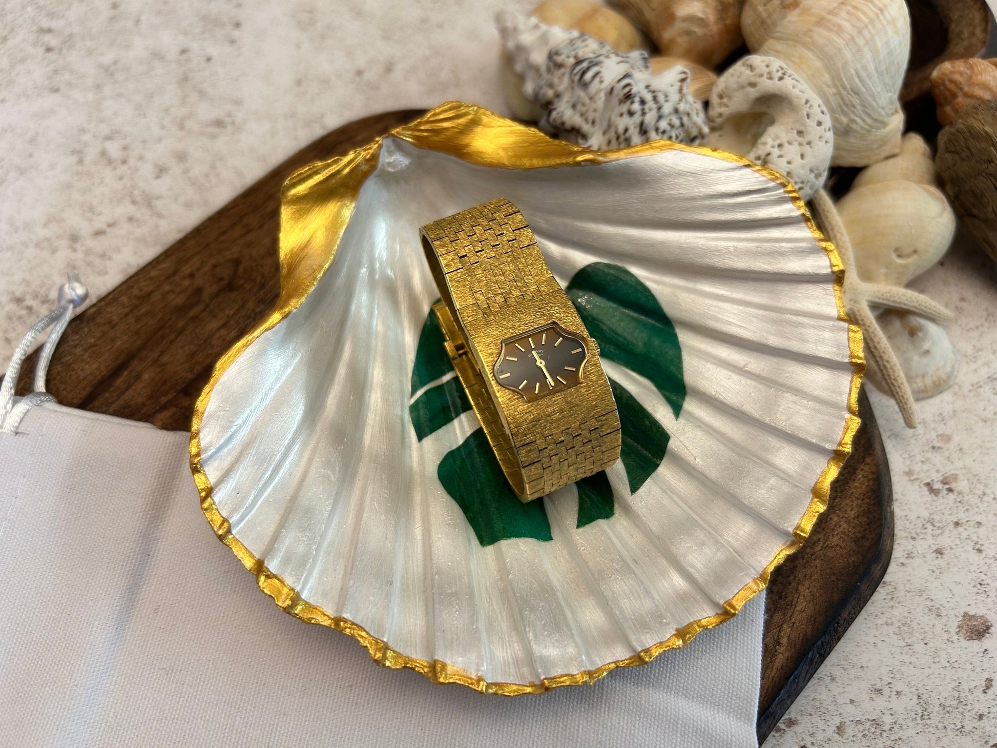 Palm Leaf Shell Trinket Dish. Gold and Green Monstera Leaf Botanical Ring Holder.