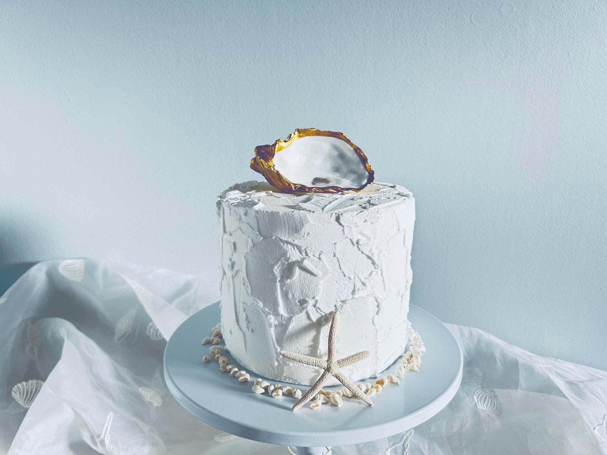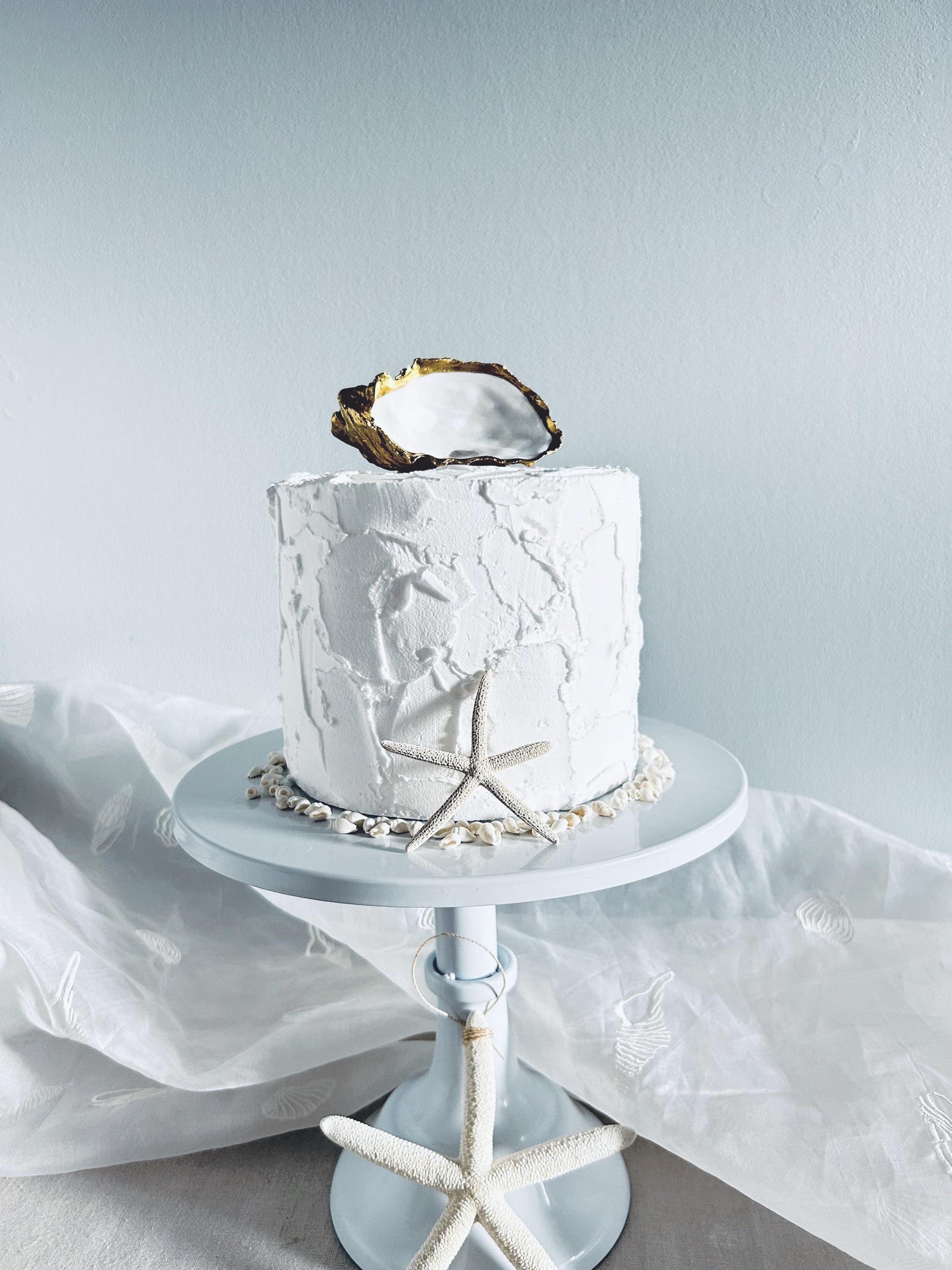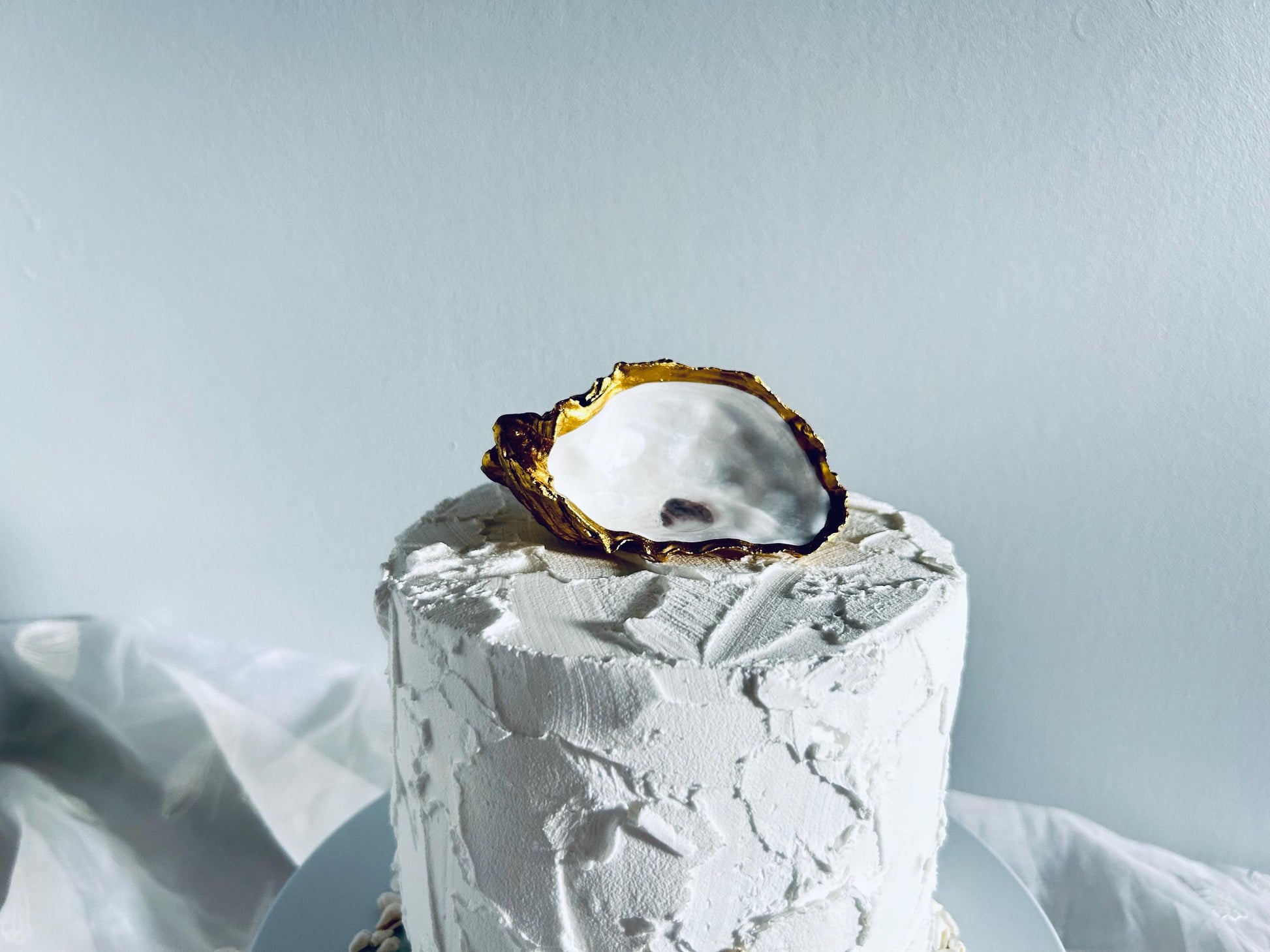 Personalised Gold Oyster Shell Topper. Small Wedding cake Decor. Last Toast on the Coast Party.