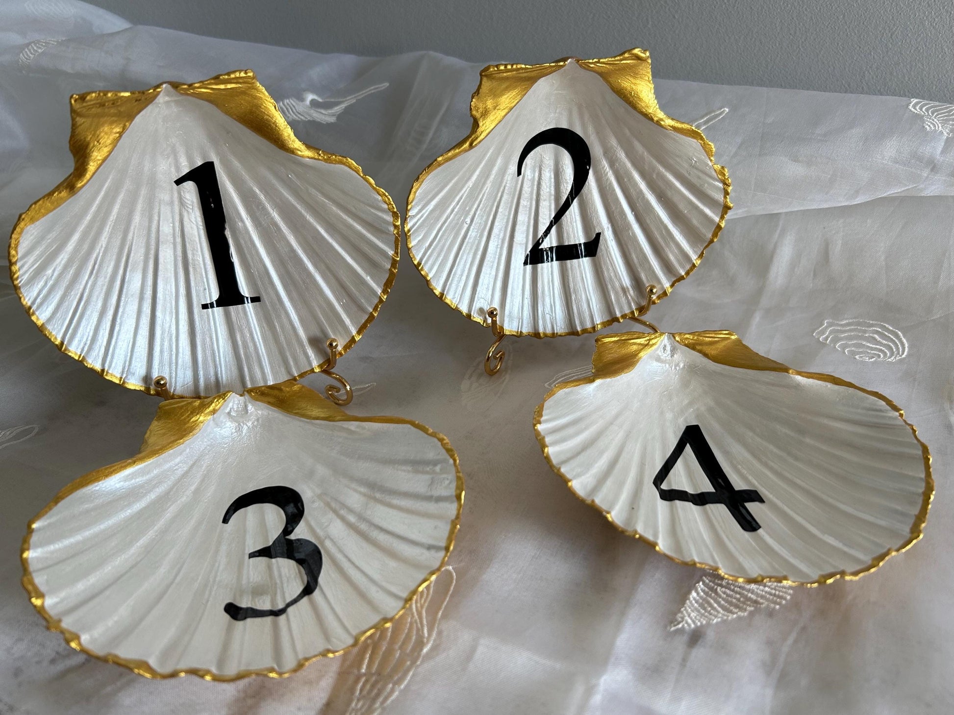 Gold Scallop Seashell Wedding Table Numbers or Names.